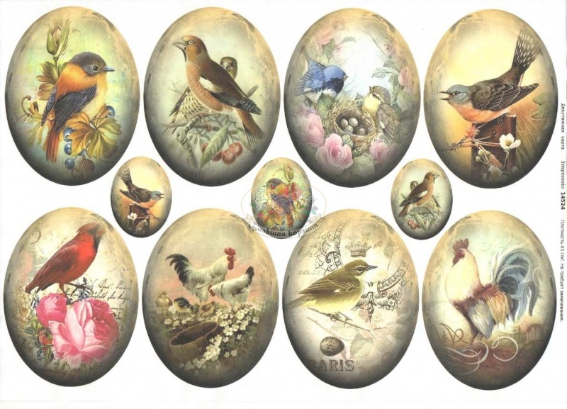 Декупажная карта с традиционными пасхальными сюжетами, идеально подходит для магнитов, небольших панно, маленьких шкатулок. Содержит 11 фрагментов