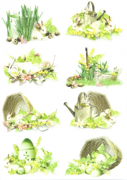 Декупажная карта А4 7364 Пасха, кролик, лейка