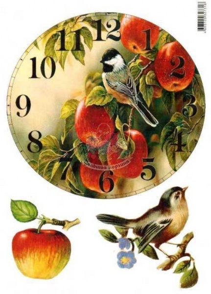 Декупажная карта 0078 Циферблат Яблоки