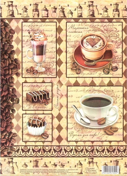 Декупажная карта "Кофейная" — это тончайшая бумага плотностью 40 г/м?.